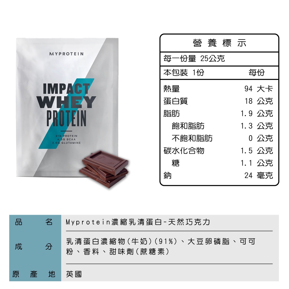 Myprotein 濃縮乳清蛋白隨身包 天然巧克力 25g